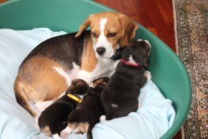 Unsere Lotte hat am Montag/Dienstag 14./ 15.Mai3 Beagle-Welpen das Leben geschenkt | |||||||
