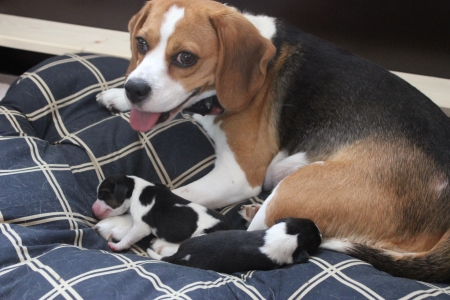 Am 22.06.2011 haben zwei wunderschön gezeichnete Rüden "Alfons der Platzhirsch" da er sich immer an die Milchwirtschaft drängelt und eine geweihähnliche Zeichnung am Kopf hat und "Amigo der Freundliche" der gerne in meiner Hand schläft das Licht der Welt erblickt.